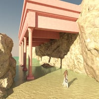 HT Greek Pink Columns Dream is a surreal 3D environment blending the elegance of classical Greek columns with a dreamy palette of soft pink tones and a serene ocean backdrop.