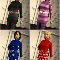 Add some additional variety to the Jersey Dress outfit with this vibrant texture add-on. There are 51 new mats featuring various new knit patterns for the dress and leggings, including Argyle, stripes, hearts, animal prints and more. There are also several alternative suede mats for the boots and patterned belt mats. The custom belt colours can easily be created by using the white Mat as a template, then altering the colour via the diffuse slot under the presets (surface colour) tab in DAZ Studio.
