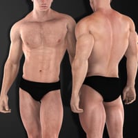 Goodies include photo-realistic skin, a bald and a head of hair option, body hair and smooth skin options, facial hair from smooth to scruffy, and stunning inked skin, crafted with the help of beautiful Photoshop brushes by deviney!