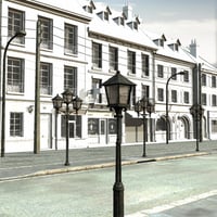 A set of nineteen props: from roads, to street lighting, to signs, to street furniture, to accommodate all your village scenes.