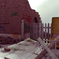 This disastrous street 3D scene comes with a fully rigged garden gate, salt bin and destroyed house, and is perfect for an apocalyptic or post-earthquake urban scene.