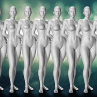 I used the 12 common body shapes .... Apple, Hourglass, Column, Pear and their subtypes as real life references for these bodies. I find it more interesting to vary the body types when I work so that not everything looks the same. The different body styles are even grouped together in threes to make it easier to jump between the styles.