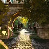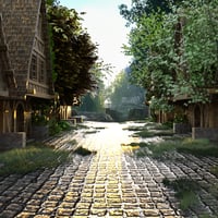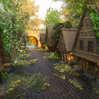 Transport your scenes into a sunlit, storybook world with Medieval Forest Village - a highly detailed 3D environment for DAZ Studio.