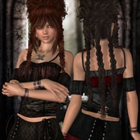 As seen in Sugar Doll renders in the past, PropsChick finally presents Merilia Hair. An updo with braids cascading down your model's shoulders, hideable braids that move with great movement morphs included. With fits for A4/G4 and enough adjustments to fit to S4, Merilia Hair also has an additional hair figure for Alyson 2 as well, to fit to Blackhearted's Anastaysia with very little adjustments. Complete with 8 more colors and hair band colors, you will find DS compatibility as well.