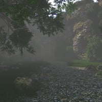 Venture along this trail in the middle of a canyon completely covered in fog, where at the end of the path there is a huge stone wall blocking your progress.