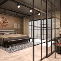 The Modular Studio Room captures the essence of modern city living with an open-plan loft design, industrial details, and customizable modular walls.