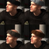 Detailed trans-mapped Monk hair for the Genesis 2 Male(s). Comes with a number of morphs for fitting and posing with 6 texture options, Brown, Black, Blonde, Grey, Light Brown and Red.
