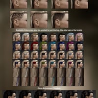 Shaved styles load with a dark shaved scalp but there are also MATS included so you can color this, there are also some color choices for different hair ties. In addition I've included some gloss shaders so you can adjust the shine of the individual hair component at the click of your mouse.