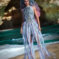 - A thick, flowing, long hairstyle with flowing underwater movement morphs