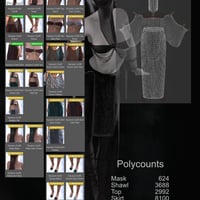 Mask, Shawl, Top, Skirt, and Shoes.