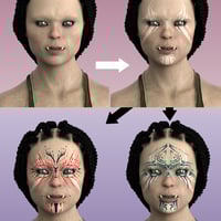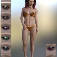 Tzanee comes with high-definition morphs, 2 Base-Shader settings, 15 combinable LIE Makeups and Warpaints, 7 iris colors, and 2 shader presets for the sclera, which are useable with all your Genesis 8 Females.