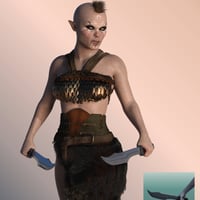 The set includes a pair of orcish shortswords with hand poses as a bonus! Add Orc Girl Tzanee for Genesis 8.1 Females to your collection today.