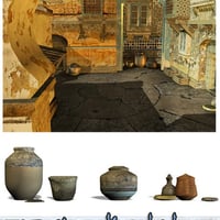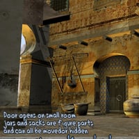This is a full 360 degree figure with many moving parts. All the pots and grain sacks are separate parts and can be moved or hidden. The set also has many of those same items saved as stand alone props. This set has high-res textures and bump maps, great for close up work.