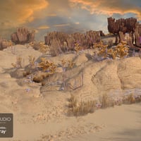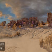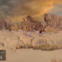 The plain is covered with endless deserts, which cross the dried up riverbeds. The planet has an oxygen atmosphere and its unique ecosystem. Plants adapted to the arid climate.
