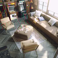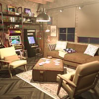 Step back in time with this vibrant Vintage Arcade Game Room, a nostalgic blend of old-school charm and playful energy. Complete with classic arcade machines, cozy sofas, scattered chairs, and even a set of poker cards for after-hours fun, this environment captures the essence of 80s and 90s gaming culture.