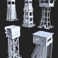 Post Apocalyptic Watchtowers 1 is a collection of 5 makeshift lookout points, for the defence of all your post apocalyptic scenes.