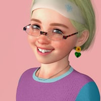 Kristyn comes with two skin tones, two eye colors (blue and brown), three lip colors (pink, red, pink), five makeup colors (blue, green, pink, party 1 and 2), one mouth and teeth material, one tear duct material, custom eyebrows in two colors, custom teeth, a custom belly button, and an eyelash adjustment.