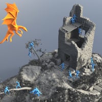 The Ruined Tower Poses are a set of 18 dynamic poses for Genesis 8 Male for use with the Ruined Tower by Predatron. It also includes 2 poses for the Ogre HD for Genesis 8 Male and 4 poses for the Daz Dragon 3. Additionally, it requires the Really Cool Bow Poses for Genesis 8 Male for the 5 bow poses and wearable presets.