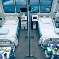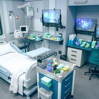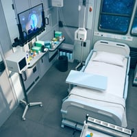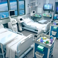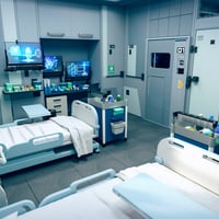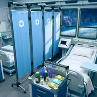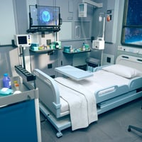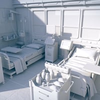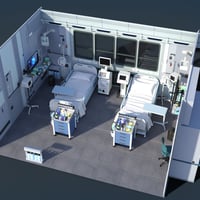 You will have a well-equipped sci-fi patient room scene with 2 patient beds, a partition, all kinds of medical supplies, medical equipment, etc.