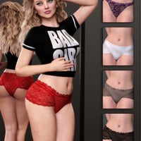 Lacy, racy, and always classy, your favorite Genesis 9 characters are sure to charm in these inviting intimates. Updated and redesigned to give your characters a fresh, modern look, these styles include everything from practical daywear to provocative bedroom attire. Choose from 10 different designs, each in 5 different material presets, that work well underneath any of your outfits, but are also designed to be used as a seductive stand-alone. A simple, one-click solution, these panties allow you to quickly add a touch of sexiness to any of your favorite Genesis 9 characters.
