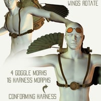 Those magnificent men and their flying machines. Steam Punk is even more fun in 3D where no matter how heavy things get with enough push on the Y axis you can fly. This set explores Steam Punk flight with a harnessed air pack, goggles, and a matching wrench. Oh and of course there's a gun, for pigeon hunting.