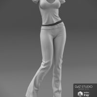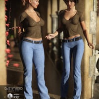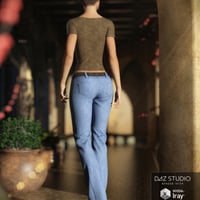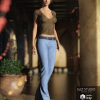 Street Casual Outfit for Genesis 3 Female(s) is a simple yet stylish ensemble of form fitting flare pants and deep V-neck short sleeve shirt.