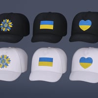 The Sunshine Hat for Genesis 8 and 8.1 Male and Females features a casual baseball cap for both males and females in 2 colors: black and white. There are also 3 yellow and blue designs for each hat color: a sunflower, flag, or heart — all to show support for Ukraine.