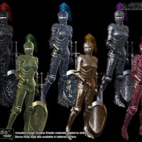 Sword Sisterhood Court offers you stylish, high end, polished, clean textures for the V4 Historical Armor, perfect for your heroines, elves, and warrior queens. They show you how the Sword Sisterhood textures were once, before time and combat took their toll, with an extra brand new Ruby set in both clean and battered versions.