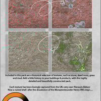In this pack, we celebrate Revaulx Abby in North East Yorkshire. These highly detailed, historic textures will add that level of realism to your works. Whether you're texturing a monument, abby, castle or priory. These will add that 'something' special and authentic.