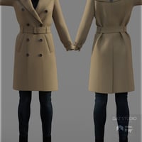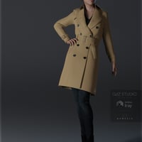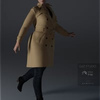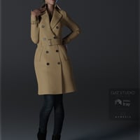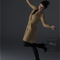Trench Coat Outfit for Genesis 3 Female(s) consisting of Short Trench Coat, Shirt, Pants and Ankle Boots.