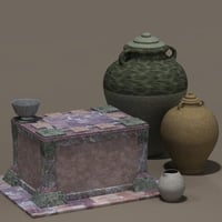 In Poser the sacred chest lid is parented to the sacred chest and the sacred chest is parented to the ground prop. The jar lids are also parented to their respective jars.