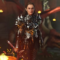 Valenia 9 brings high-fantasy elegance to Genesis 9 with her slim silhouette, sharp facial details, custom navel, and fibermesh brows. She's a fit, middle-aged, awe-inspiring woman ready for any scene, from battling a dragon or even becoming a dragon with the Valenia 9 HD Add-On Bundle!
