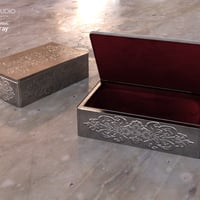 This is a Vintage set, made of Silver. Has velvet on the brushes, and the inside of the box is also covered with velvet.