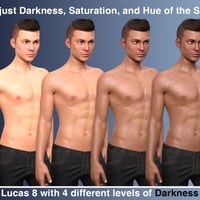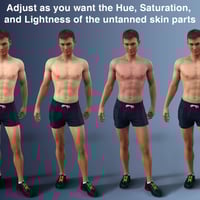 Change the tan fast and easily: by combining five tan boosters, and several presets of Base Color maps levels of darkness, of saturation, and hue variations, you can reach hundreds of possible tan levels and types, from very pale to extremely tanned skins, or from cold brown tans to warm orange ones. In addition, Tan Boosters, acting on the gamma of base color image maps, allow to reach a wider variety of skin tones. And even much more tan looks can be reached using a global control interface.