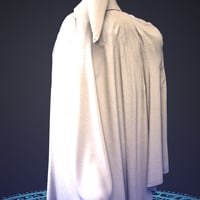 - A regal hooded cloak with ornate trim and mystical detailing
