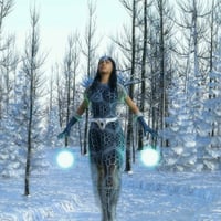 Witch Of Winter Outfit for Genesis 8 female is a set of 7 pieces of clothing plus a Glowing mystic ball. A great outfit for all kinds of adventures in fantasy environments.