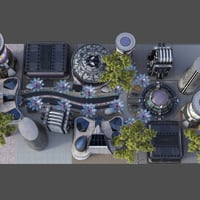 The comes with 21 props including Canopy Structure, Interactive Kiosk, Solar Healing Center etc.