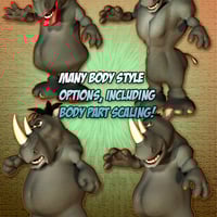 - Easypose left/right up/down and twist have been added to his tail. Bonus Charging Rhino pose, and Poser 5 matpose, with a Poser 5 displacement map have also been included!